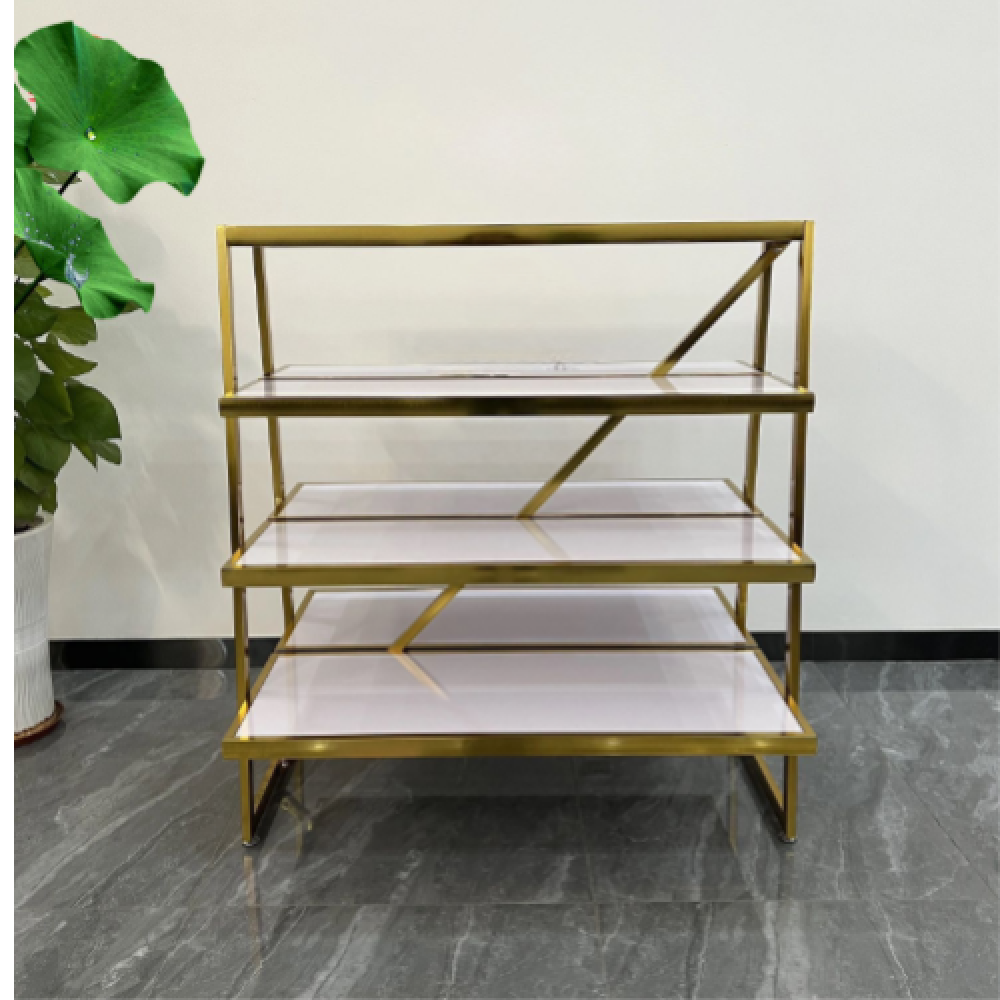 4. طاولة عرض ذهبي اتجاهين 7 ارفف مودرن